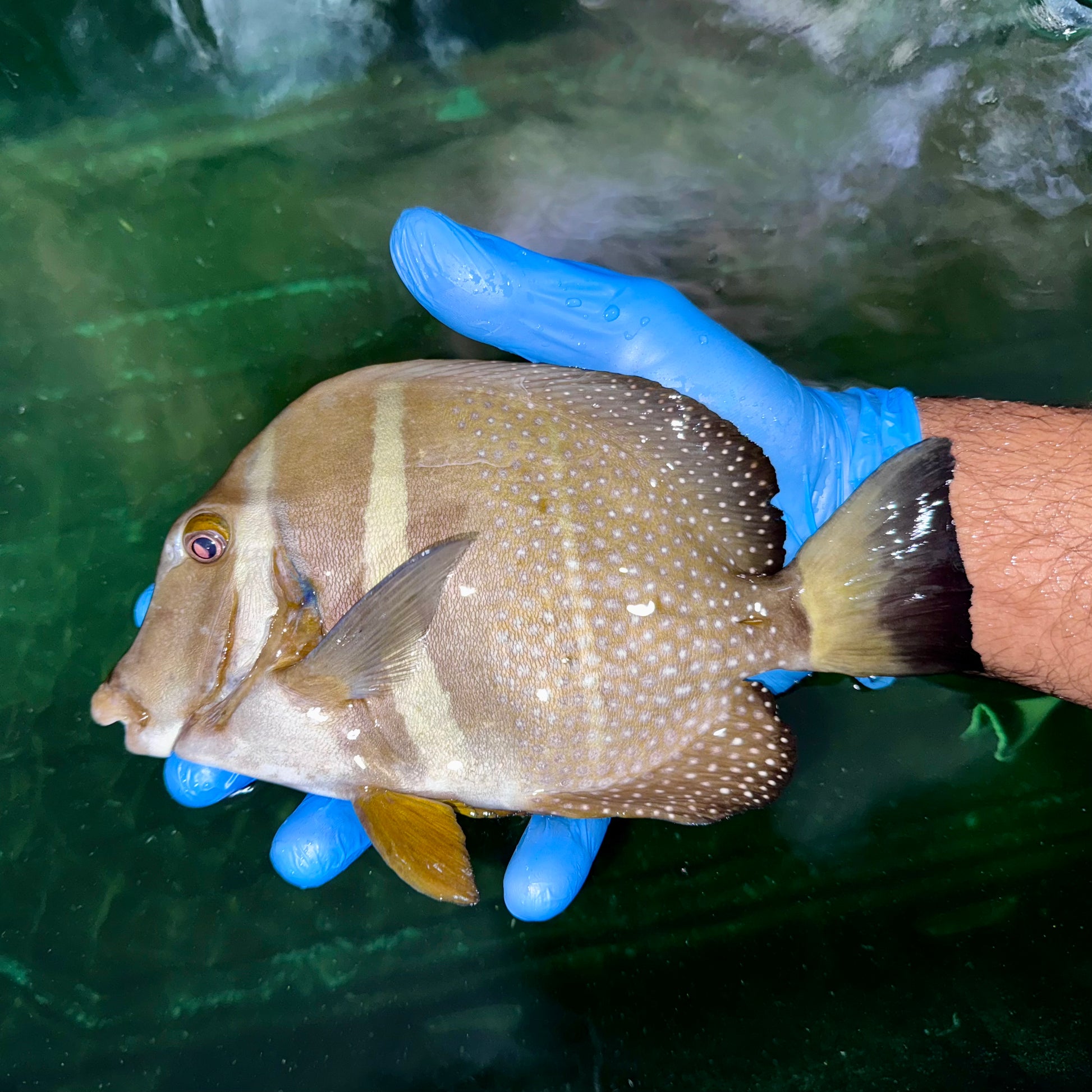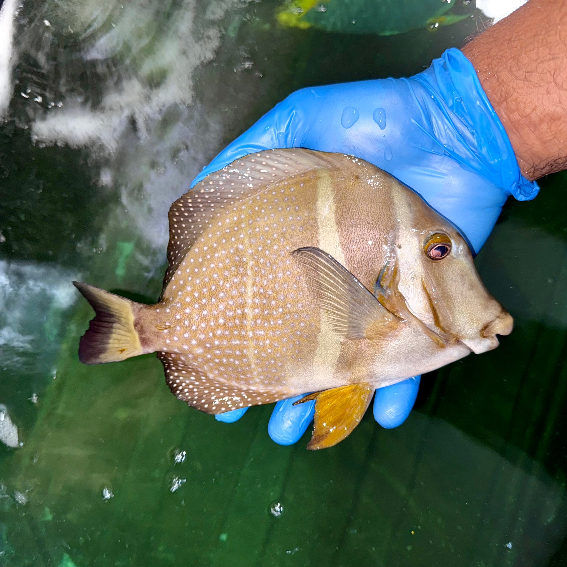 About Mustard Guttatus Tang 8-9” (Acanthurus guttatus)